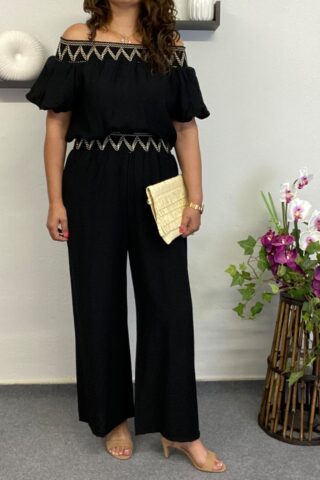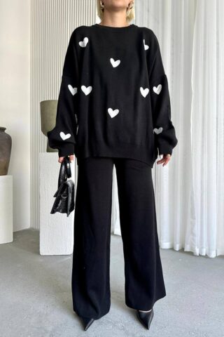 Μαύρο γυναικείο πλεκτό σετ με καρδιές