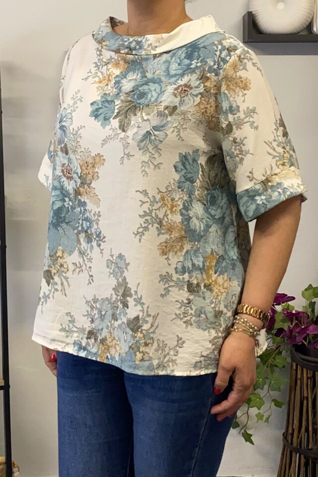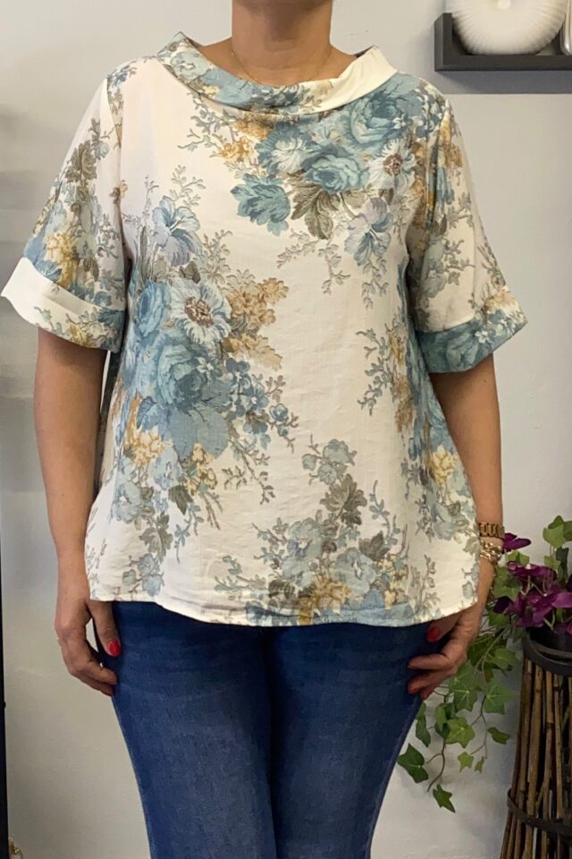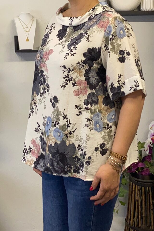 Το φλοράλ μοτίβο χαρίζει φρεσκάδα και ζωντάνια στο ντύσιμό σας, ενώ ο γιακάς προσθέτει μία διακριτική πινελιά κλασικής κομψότητας. Η γραμμή της μπλούζας αγκαλιάζει το σώμα χωρίς να περιορίζει την κίνηση ενώ προσφέρει άνεση καθ’ όλη τη διάρκεια της ημέρας. Το ύφασμα είναι απαλό και ευχάριστο στην αφή, επιτρέποντας στο δέρμα να αναπνέει, καθιστώντας τη ιδανική επιλογή για όλες τις εποχές.