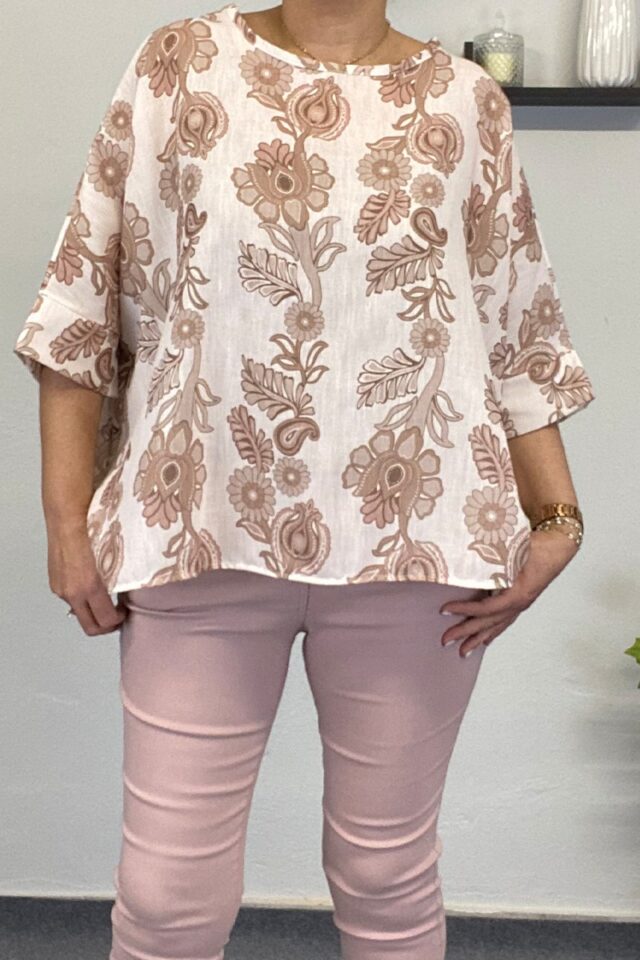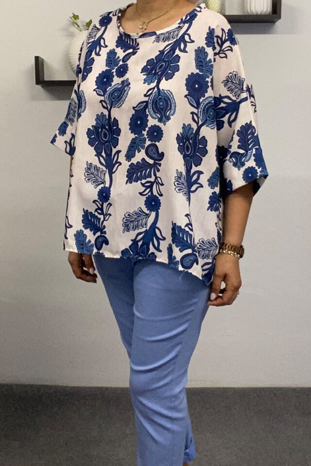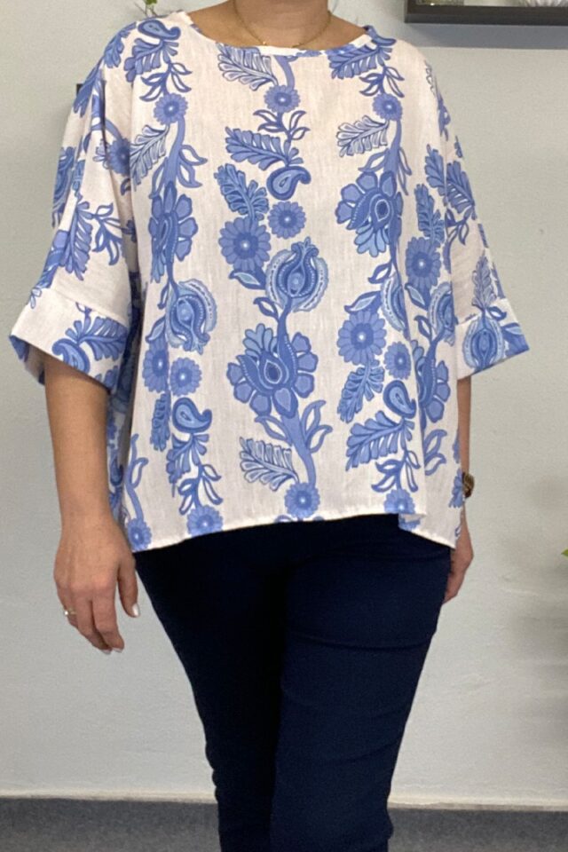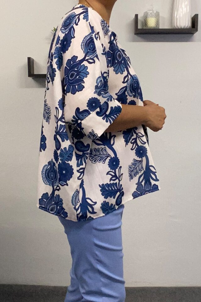 Κατασκευασμένη από ελαφρύ, δροσερό ύφασμα, αυτή η γυναικεία μπλούζα προσφέρει απόλυτη άνεση κατά τη διάρκεια της ημέρας. Η γραμμή της κολακεύει όλους τους σωματότυπους, ενώ η λεπτομέρεια στους ώμους και τα μανίκια προσθέτει μια επιπλέον αίσθηση κομψότητας.