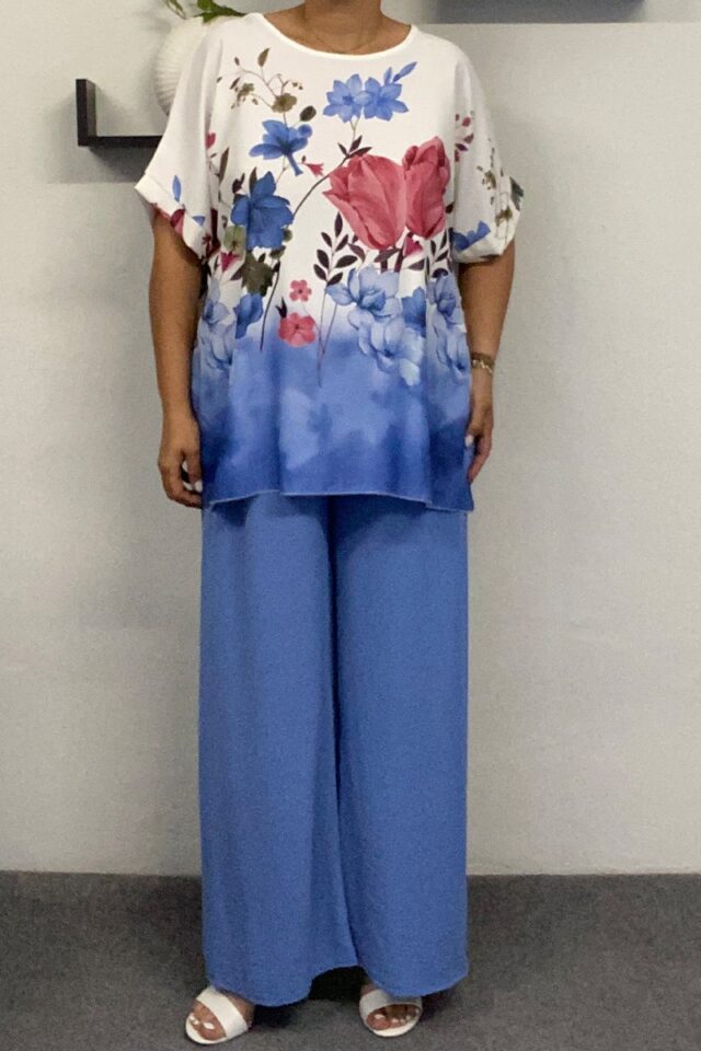 Γυναικείο Σετ Φλοράλ Μπλούζα – Παντελόνα. Κομψότητα & Άνεση με Άρωμα Καλοκαιριού