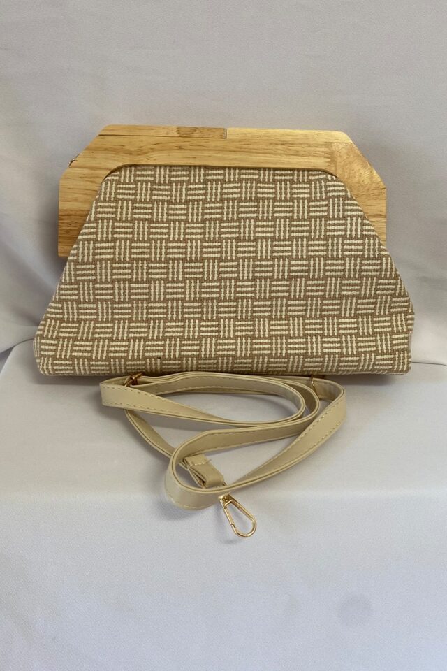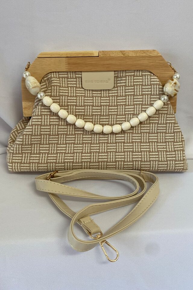 Ανακαλύψτε το απόλυτο αξεσουάρ που θα προσθέσει μια πινελιά εκλεπτυσμένης κομψότητας στην γκαρνταρόμπα σας. Το clutch υφασμάτινο μπεζ είναι η ιδανική επιλογή για την σύγχρονη γυναίκα που θέλει να συνδυάσει την πρακτικότητα αλλά και το μοναδικό στυλ. Κατασκευασμένο από υψηλής ποιότητας ύφασμα, αυτό το clutch ξεχωρίζει για την προσεγμένη του εμφάνιση και την λειτουργικότητά του. Διαθέτει ξύλινο κούμπωμα και δύο επιλογές για τον ώμο.