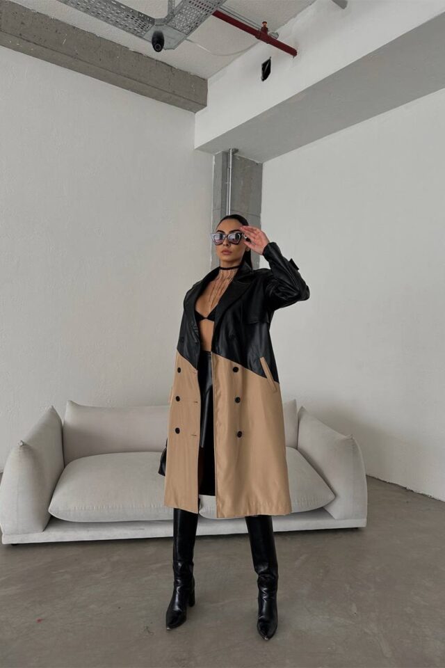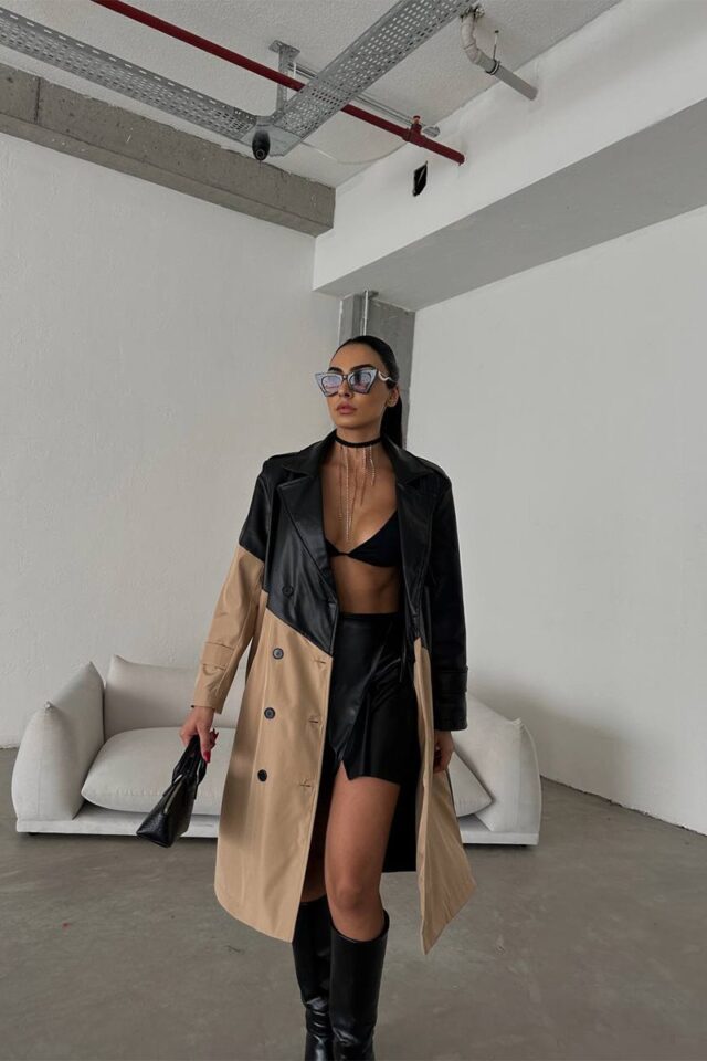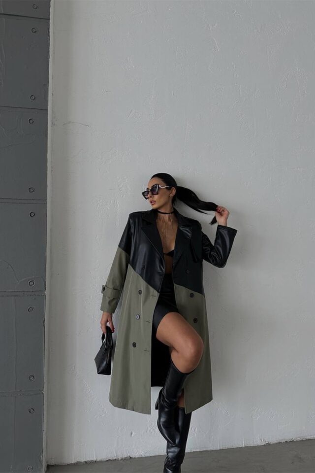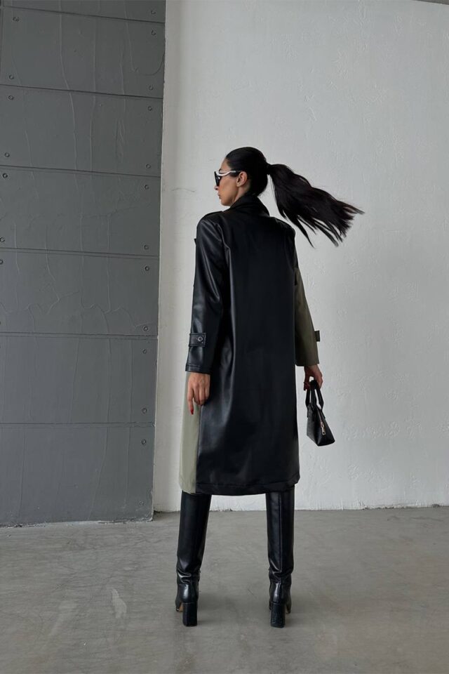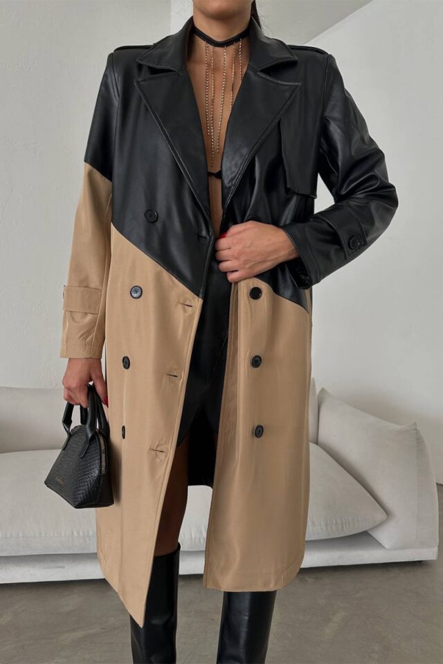 Η καπαρντίνα με δερματίνη είναι ιδανική επιλογή για μια κομψή εμφάνιση κατά τη διάρκεια των κρύων μηνών.. Το πανωφόρι αυτό από την συλλογή μας συνδυάζει άψογα την έννοια του κλασικού σχεδιασμού μιας καπαρντίνας αλλά με την μοντέρνα εκδοχή της .