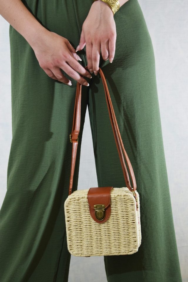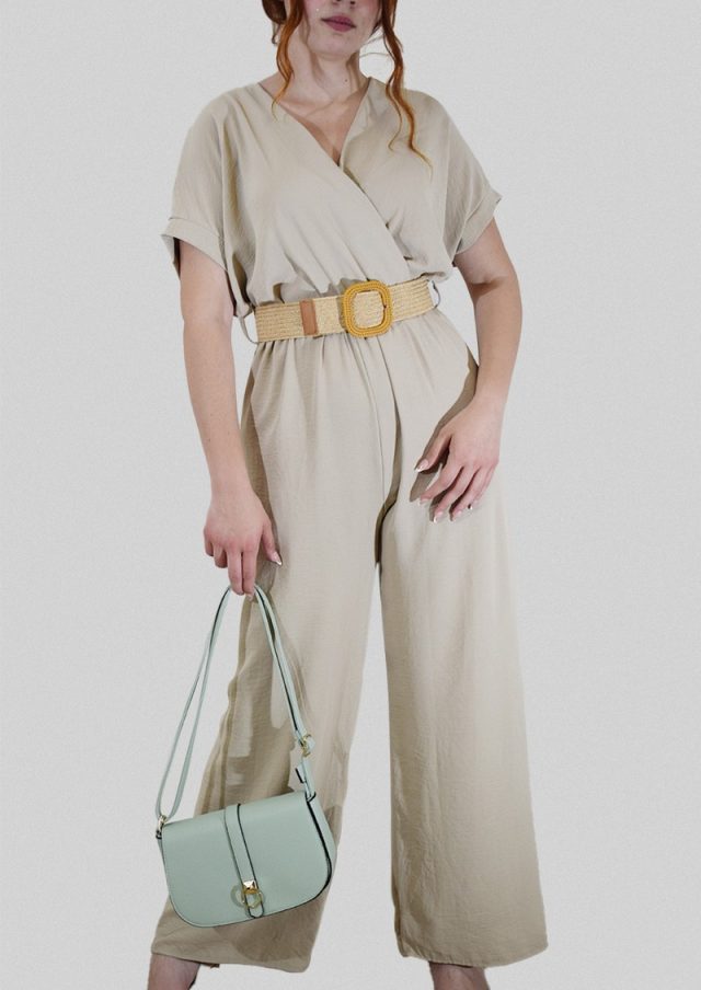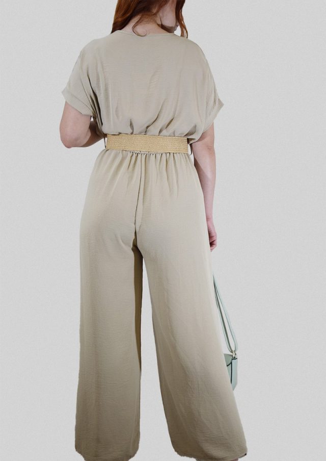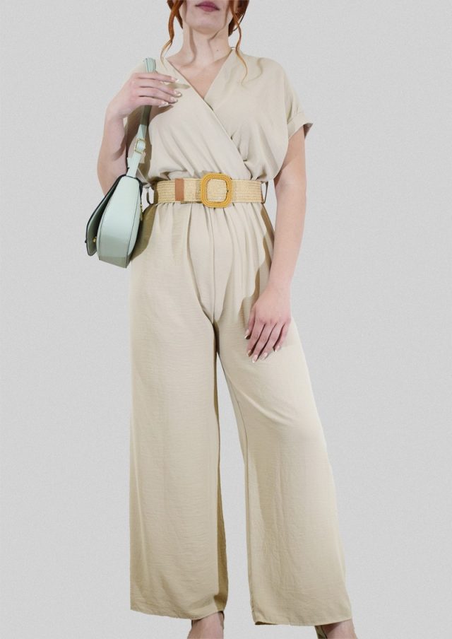 Ολόσωμη φόρμα κρουαζέ με ψάθινη ελαστική ζώνη.
