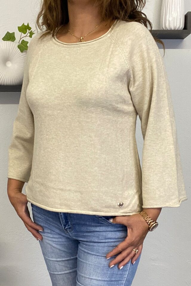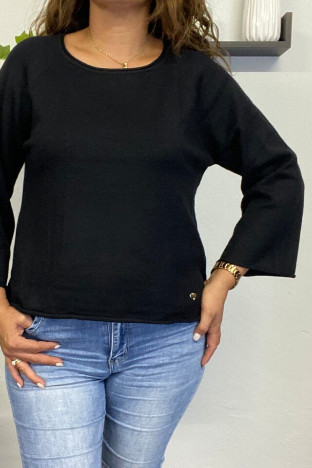 Πλεκτή γυναικεία μπλούζα με λαικόψη χαμόγελο. Είναι σε ίσια γραμμή με Raglan μανίκι. Έχει πολύ απαλή υφή και θα την βρείτε σε τέσσερα χρώματα εκρού, μπεζ, ραφ, και μαύρο.